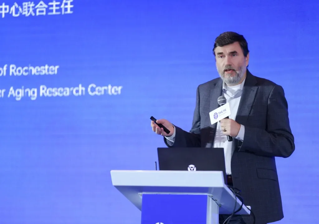 会议中,教授展示了其团队利用人工智能彻底革新衰老评估方式的成果。