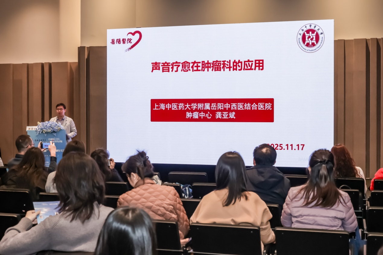 上海中医药大学附属岳阳中西医结合医院肿瘤一科(内科)主任龚亚斌教授结合临床实践阐述了声音疗愈在肿瘤科的应用。他展示了音乐疗法在缓解癌症疼痛、改善睡眠方面的确切疗效,并介绍了团队结合中医理论开发的“五行音乐”等创新方案。他强调,音乐疗愈已成为肿瘤综合治疗中不可或缺的一环。