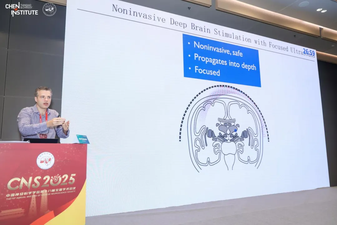 来自犹他大学的Jan Kubanek介绍了由其团队开创的一种突破性的超声波脑机交互技术。不同于传统侵入式电极,这项技术利用超声波能穿透颅骨的特性,通过微秒级的精确聚焦,实现了对基底节和丘脑等大脑深部结构的非侵入性调控,创新性地解决了超声波在颅骨传导时的衰减问题,确保了治疗剂量的精准递送。
